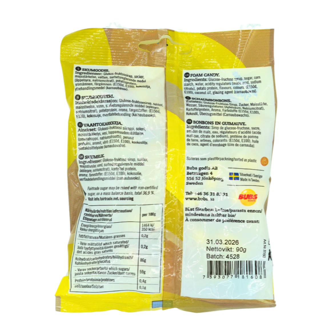 These are completely bananas. Plus wonderful caramel. You recognize the taste from one of our most popular candy pieces in the pick and mix, Banana Bubs. But now in a smaller format as a bag. Tasty!