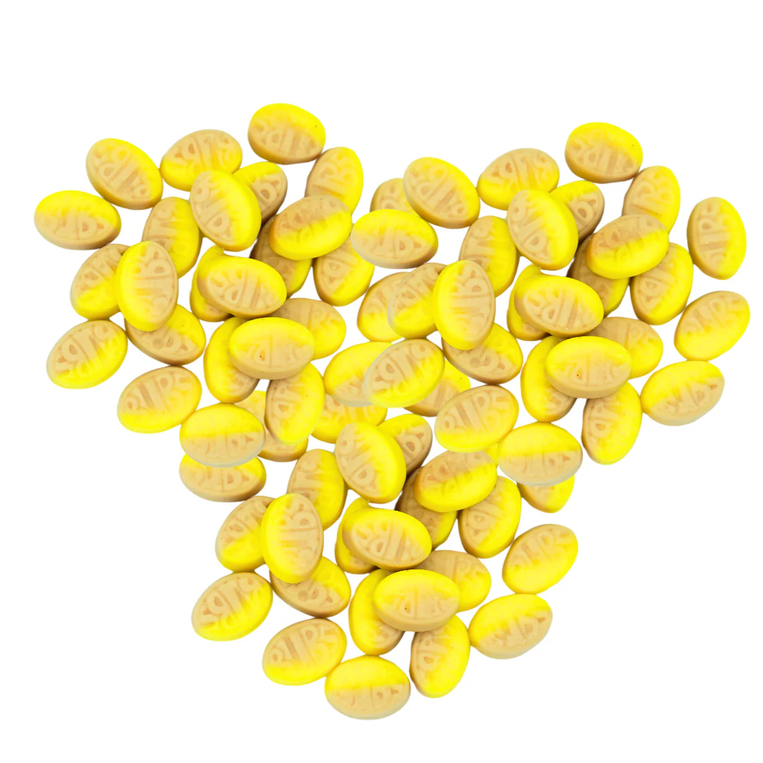 These are completely bananas—plus a hint of wonderful caramel! You’ll recognize the irresistible taste from one of our most popular pick-and-mix candy pieces, Banana Bubs. Now in a convenient mini format, you get three bags of this chewy, flavorful delight to enjoy or share.